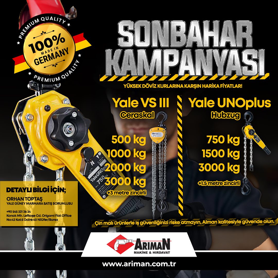 Arıman Makine & Hırdavat olarak, Yale Ceraskal iş birliği ile Yale VS III ve Yale Uno Plus ürünlerine avantajlı fiyatlarla sahip olabilirsiniz. İş güvenliğinizi yüksek Alman kalitesiyle arttırın. Sınırlı stoklu ürünlerimiz için fiyat teklifi almak için hemen bizi arayın…